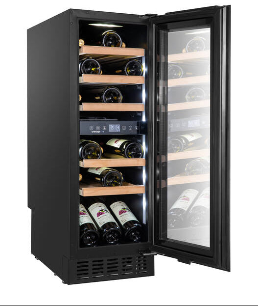 The sleek and slender Avintage model, boasting an 18-bottle capacity, is equipped with dual temperature zones, ideal for preserving different varieties of wine. It comes with both audible and visual alarms to warn of any changes in temperature, complemented by an anti-vibration system and automated humidity regulation. Its versatile design allows for installation as a freestanding unit or positioned under a counter. The standing bottle area can be really handy for everyday use. Very quiet at 37dB and costing under £20 to run, this is a premium, attractive wine fridge for the home.