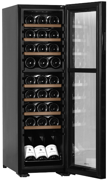 Style up your home with the Cavin Northern Collection 27, a wine fridge that combines excellent value with sleek modern design. Its UV-resistant glass door and seven slide-out wooden shelves create a stylish, functional display for your collection. This free-standing unit fits elegantly into any room and can hold up to 27 bottles, ensuring your favourite wines are always ready to serve at the perfect temperature.