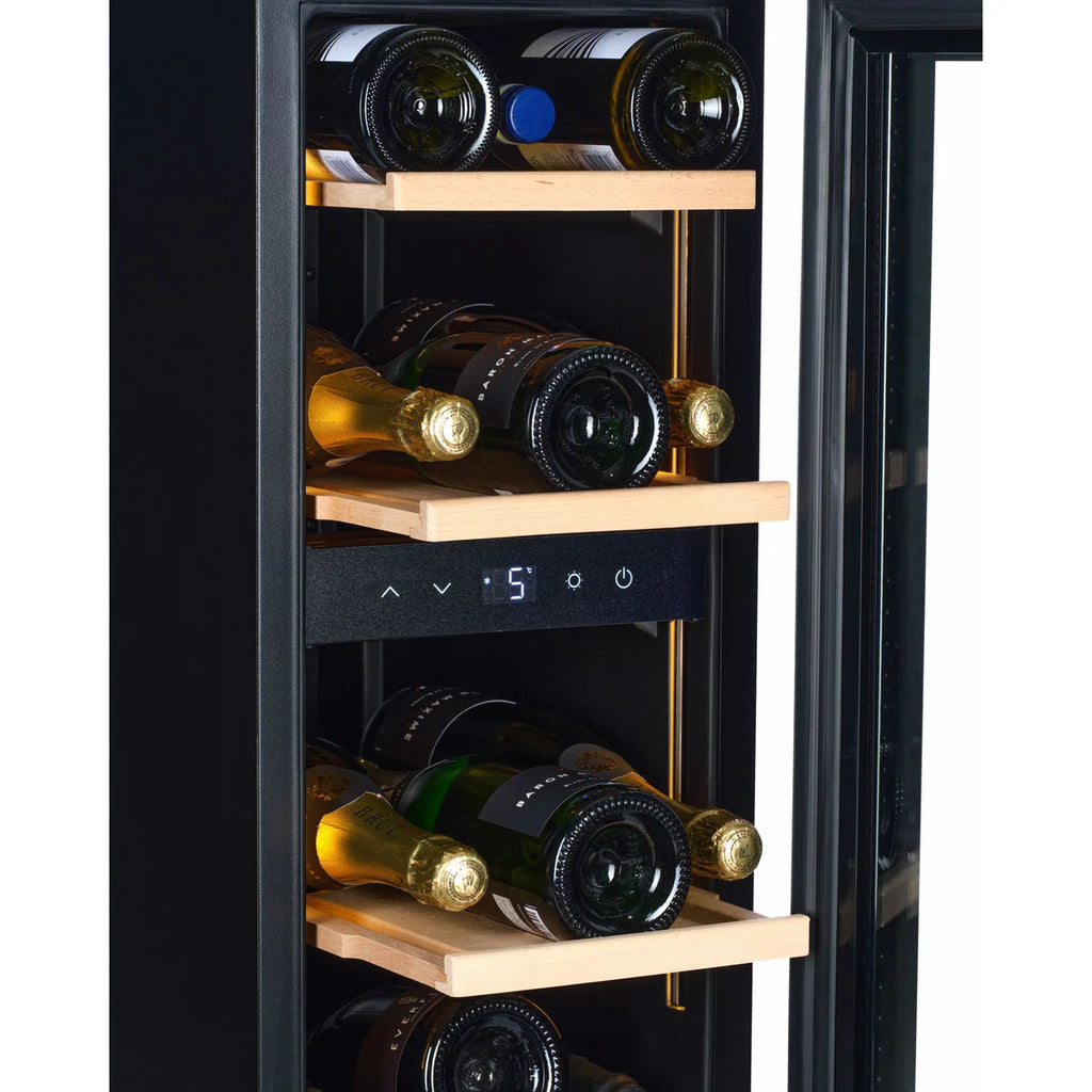 The CELLA W18S-BH wine fridge is a superb addition to any modern kitchen, offering both style and functionality. Its adjustable feet, undercounter bracket, and zero-clearance hinges make installation effortless, the UV protected door with black handle and compact design blend seamlessly into contemporary interiors. A single temperature zones (5–20°C), built-in alarms, an inverter compressor, anti-vibration system, and charcoal filter work together to maintain ideal wine storage conditions. Sliding shelves and dimmable LED lighting further enhance usability and presentation.