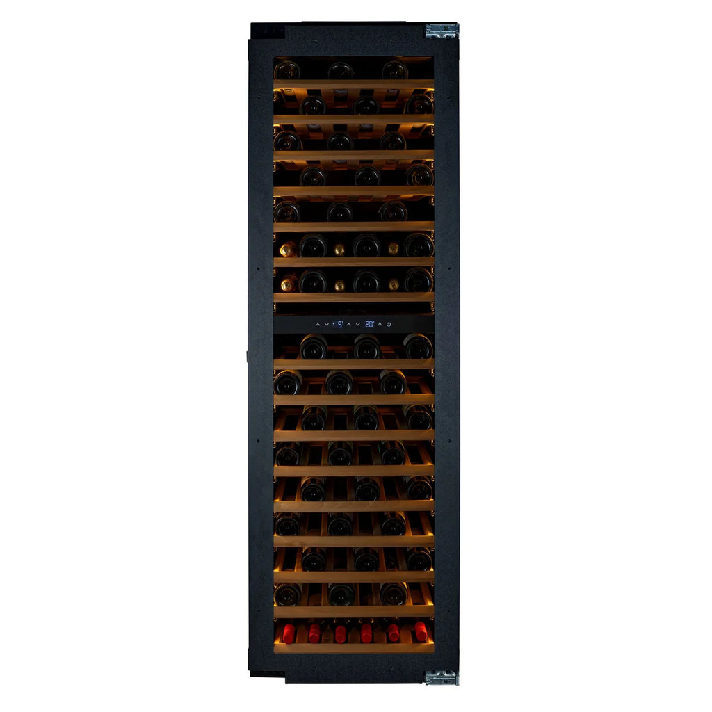 Engineered for optimal wine preservation, the W96PANEL-TO features two independently controlled temperature zones (5–20°C), automatic humidity management (55–85%), and a replaceable charcoal filter to maintain a clean, odour-free environment. Telescopic beech shelves, German Hettich zero-clearance hinges, and a push-to-open, self-closing door elevate both usability and aesthetics. The dimmable warm white LED side lighting, LCD touch display, and audible and visible alarms provide intuitive control and protection for your collection. With energy-efficient operation and advanced anti-vibration inverter compressor technology, this wine fridge sets a new benchmark for integrated, high-end wine storage.
