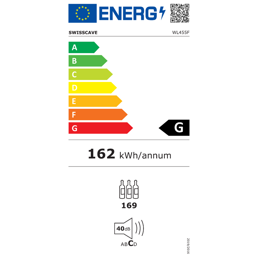 Pre March 2021 this wine fridge had an energy efficiency rating of "C" but with the changes to the efficiency scale this wine fridge now ranks "G". For more information on these latest energy rating changes to all electrical appliances please see our blog post on energy rating changes for wine coolers .