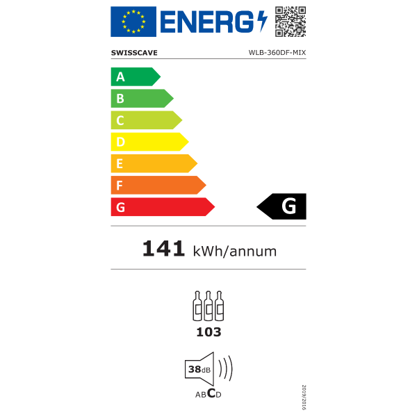 Pre March 2021 this wine fridge had an energy efficiency rating of "A+" but with the changes to the efficiency scale this wine fridge now ranks "G". For more information on these latest energy rating changes to all electrical appliances please see our blog post on energy rating changes for wine coolers .